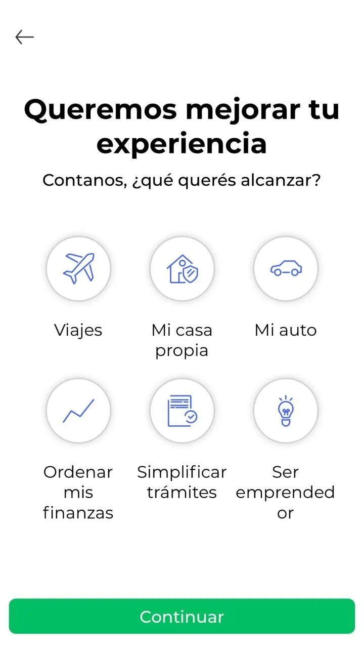 Cuando ingresé a la app de Rebanking, comenzó mi experiencia como usuaria, se me abrió el siguiente cuadro: